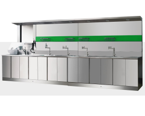 四槽式組合:預(yù)洗槽+蒸汽清洗槽+酶洗槽+(全自動或普通)超聲清洗(臺式或升降式)+漂洗槽